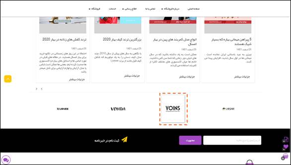 اصلی فروشگاه در بالای سایت نمایش داده می شود و