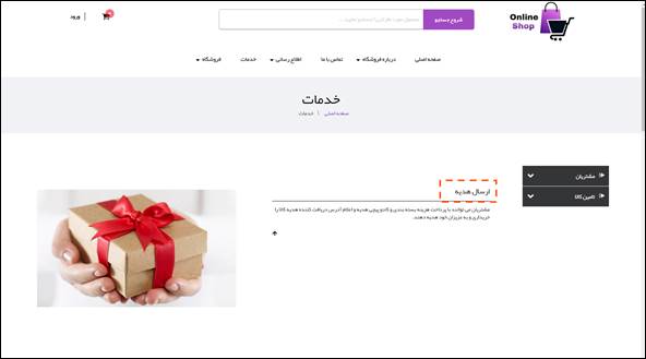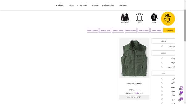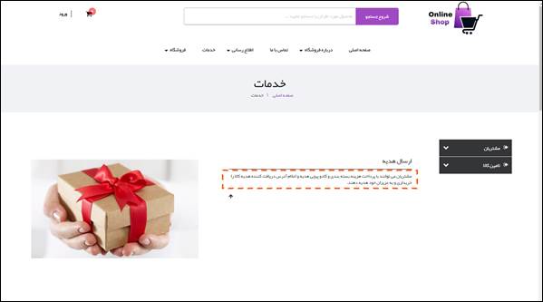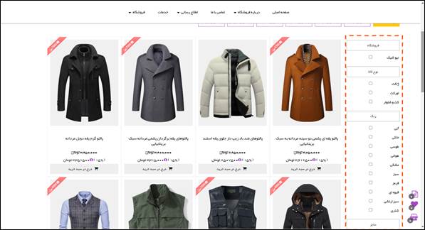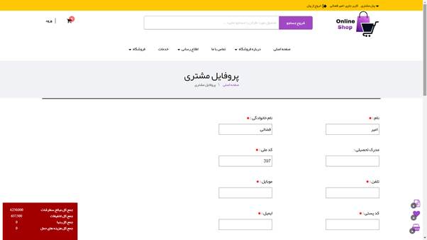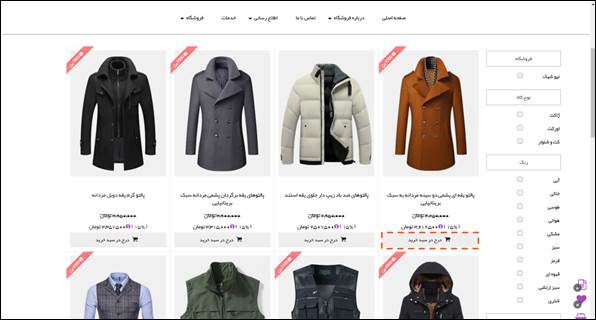بازدیدکننده فروشگاه می تواند وارد گزینه های این