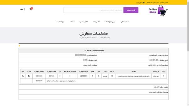 بعد از پرداخت آنلاین وارد بخش سفارشات می شود و سفارش خود را مشاهده
