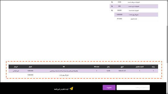 بخش امتیازاتی که از حساب عضو باشگاه به حساب دیگر اعضاء منتقل